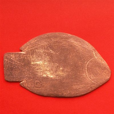 A slate palette in the form of a fish, with incised details. These were originally used to grind down coloured minerals, such as malachite, for use in cosmetics. They are found in many graves, together with the flint grinding pebbles, and are a typical product of Predynastic culture. Such palettes were often carved in the shape of stylised birds, fish and other animals, reflecting the Egyptians' love of nature.